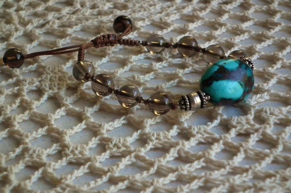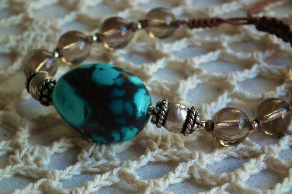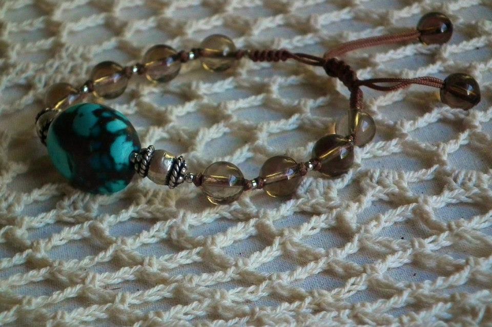 前回のとほぼ同じ感じで作りましたが、今回はターコイズも大きめ そして中心にターコイズにシルバーをあしらって少し強い印象になるようにと やってみた、石が違うのとシルバーをあしらうとこうも違うのかと思うほど 全く違う感じです、これは大切な人へのプレゼントです